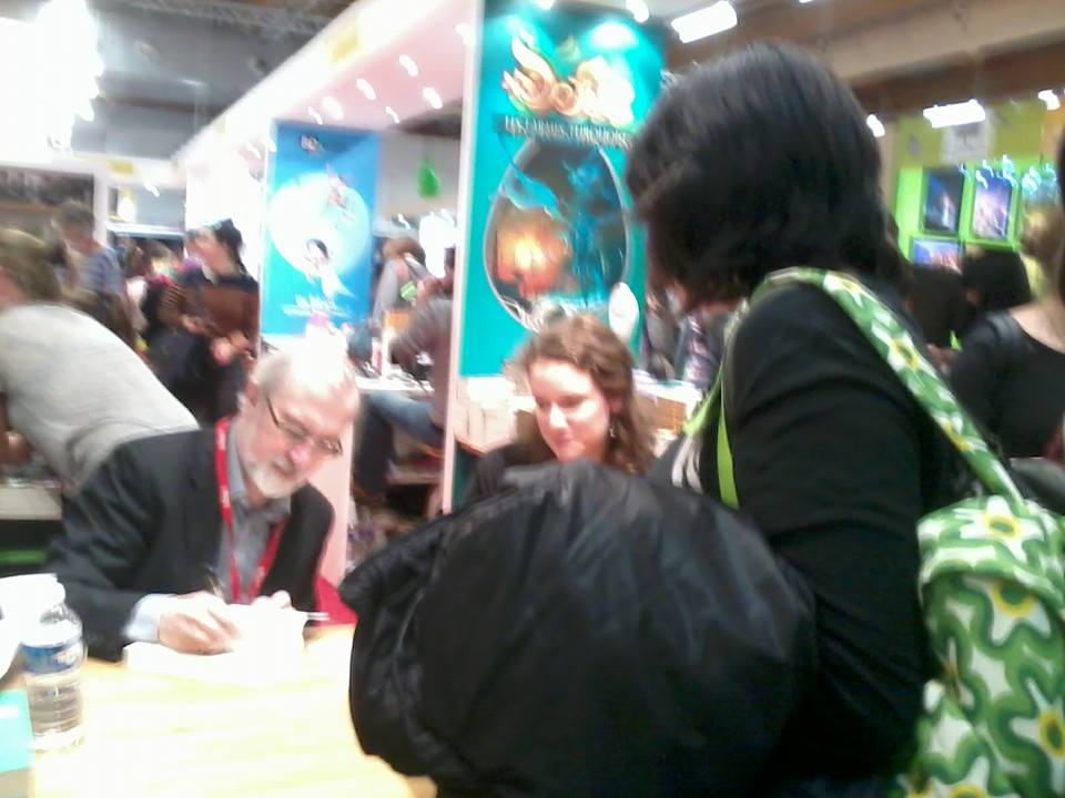 Au salon du livre jeunesse de Montreuil, auquel je suis allée avec Maeve de Mille (et une) lectures le 5 décembre dernier, j’ai eu la chance d’assister à une rencontre-débat à laquelle Joseph Delaney participait, puis de me faire dédicacer mon livre. Très sympathique.